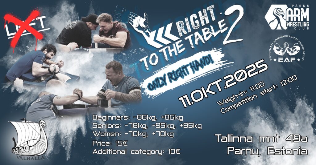 Käesurumise kesktaseme seminar Tallinnas Estonian Armwrestling club korraldab 8. veebruaril 2026 Tallinnas käesurumise kesktaseme seminari, mis on suunatud sportlastele, kellel on juba algteadmised olemas ning soov treenida targemalt ja eesmärgipärasemalt. Seminari viib läbi Erik Jõesaar, Eesti edukaima käesurumise klubi peatreener ja hetke seisuga üks Eesti tugevamaid käesurujaid. Seminaril käsitletakse üldise ja spetsiifilise jõutreeningu põhimõtteid käesurujale,…